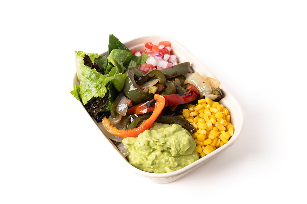 Arma tu bowl con verduras grill, 2 bases, 4 toppings y 2 salsas.