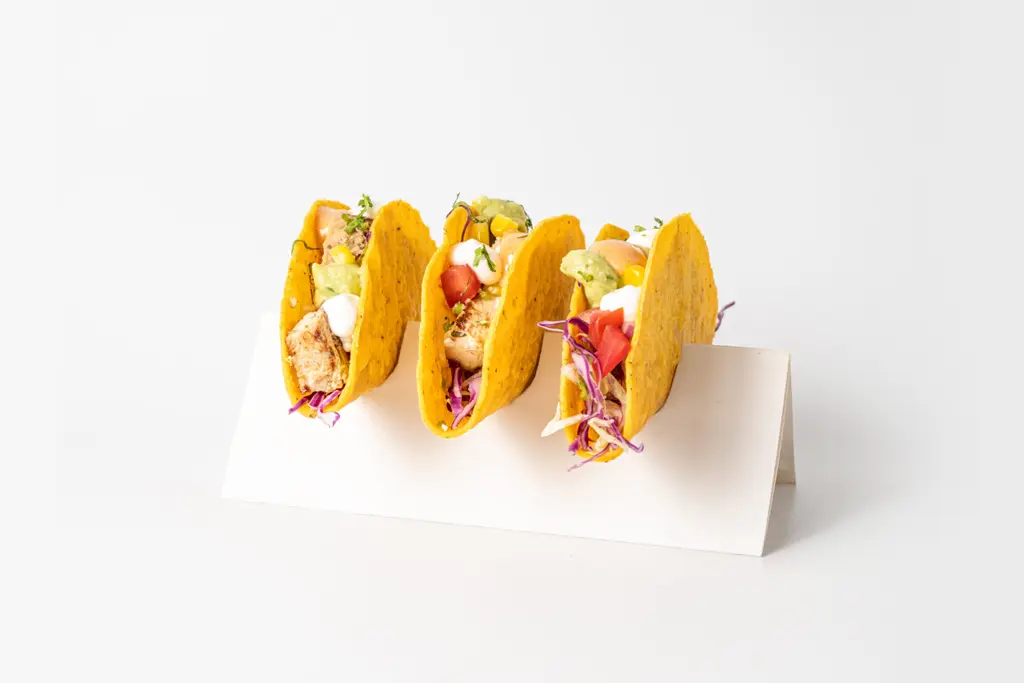 Tres tacos de tortilla de maíz con ensalada de col, tomate, guacamole, choclo americano, sour cream, chipotle golf, culantro más una salsa a elección.