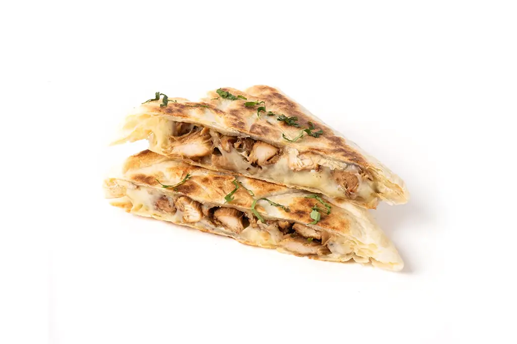 Tortilla de trigo con queso mozzarella, pollo grill, guacamole y salsa a elección.